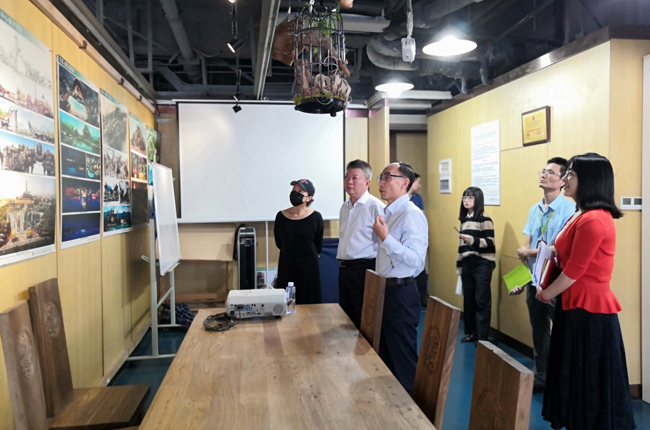 公司臨時黨委書記、董事長洪繼元(左二)現場聽取公司助理總裁、規劃設計院院長陳偉元(左三)匯報
