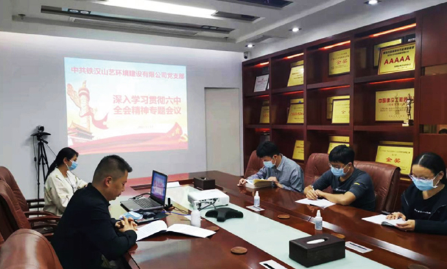 ▲鐵漢建設組織主題黨日學習六中全會精神