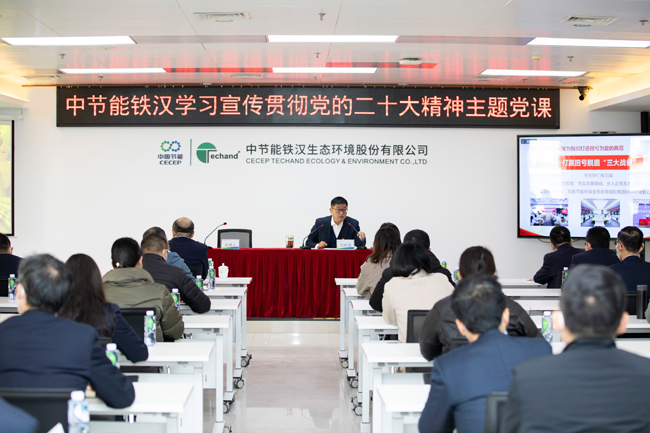根據(jù)集團(tuán)公司黨委工作部署,中節(jié)能鐵漢黨委工作安排,12月30日,集團(tuán)公司黨委副書記、總經(jīng)理,公司黨委書記、董事長(zhǎng)劉家強(qiáng)圍繞學(xué)習(xí)貫徹黨的二十大精神講授專題黨課,并對(duì)認(rèn)真抓好黨的二十大精神學(xué)習(xí)宣傳貫徹落實(shí)工作進(jìn)行動(dòng)員部署。會(huì)議由集團(tuán)公司總法律顧問,公司黨委副書記、董事胡正鳴主持。