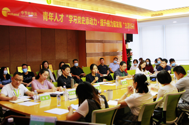 謝斐以《攻堅克難開新局•青春奮斗永向前》為題,結合黨的組織建設、干部選拔等黨史學習內容,圍繞中節能鐵漢干部選拔、隊伍建設、人才工作等重點,開展黨史教育,勉勵公司青年人才強化使命感與責任擔當,增強發展信心、樹立科學目標,在今后的工作中齊心協力、攻克難關。