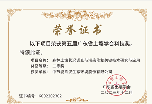 中節(jié)能鐵漢榮獲第五屆廣東省土壤學(xué)會(huì)科技獎(jiǎng)二等獎(jiǎng)