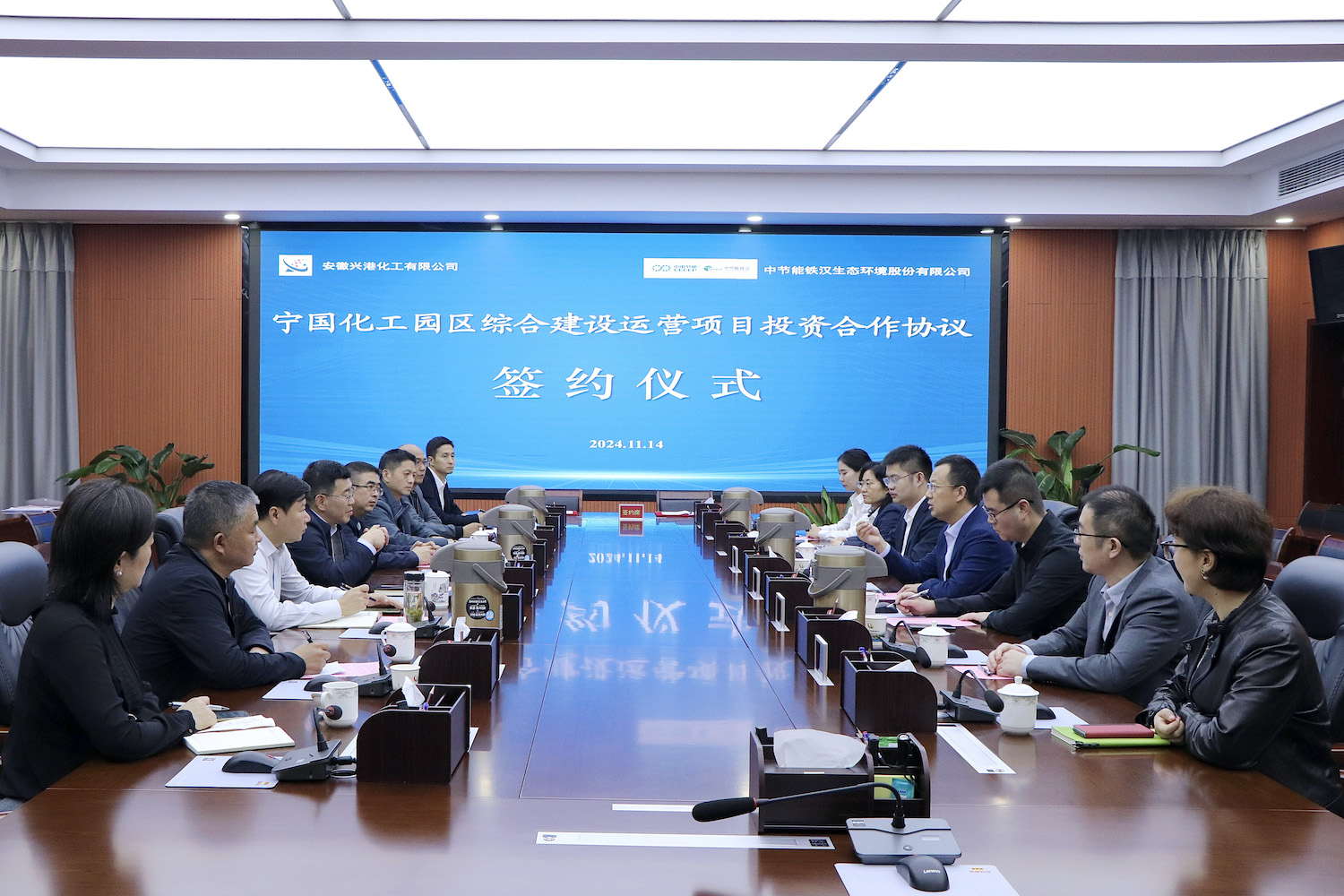 11月14日,中節能鐵漢生態環境股份有限公司與安徽興港化工有限公司在安徽省寧國市簽署了《寧國化工園區綜合建設運營項目投資合作協議》。寧國市委常委、寧國經濟技術開發區黨工委書記、管委會主任金寧,中節能鐵漢黨委書記、董事長何亮出席儀式并見證簽約。